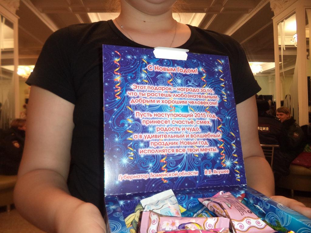 На второй день ребята побывали в драматическом театре на спектакле «Бременские музыканты». После спектакля всем выдали новогодние подарки от губернатора.