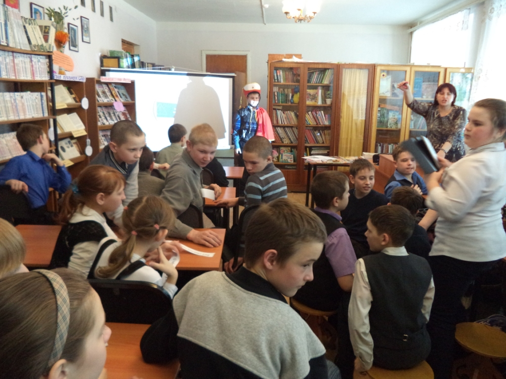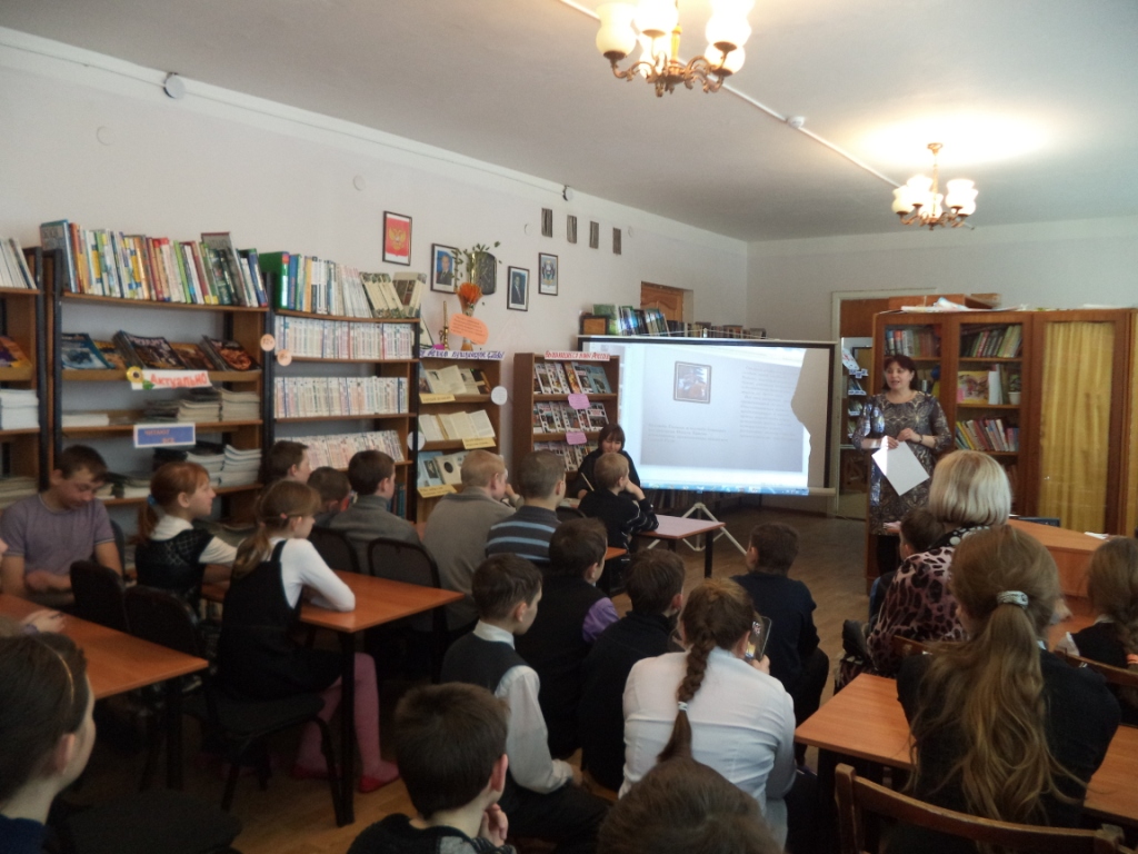 26 февраля учащиеся 4-8-х классов в рамках года Литературы посетили Центральную детскую библиотеку, где Антоненко Н.М. провела обзорную выставку книг по разделам, беседу о книгах с элементами игры «Выдающиеся воины Руси».