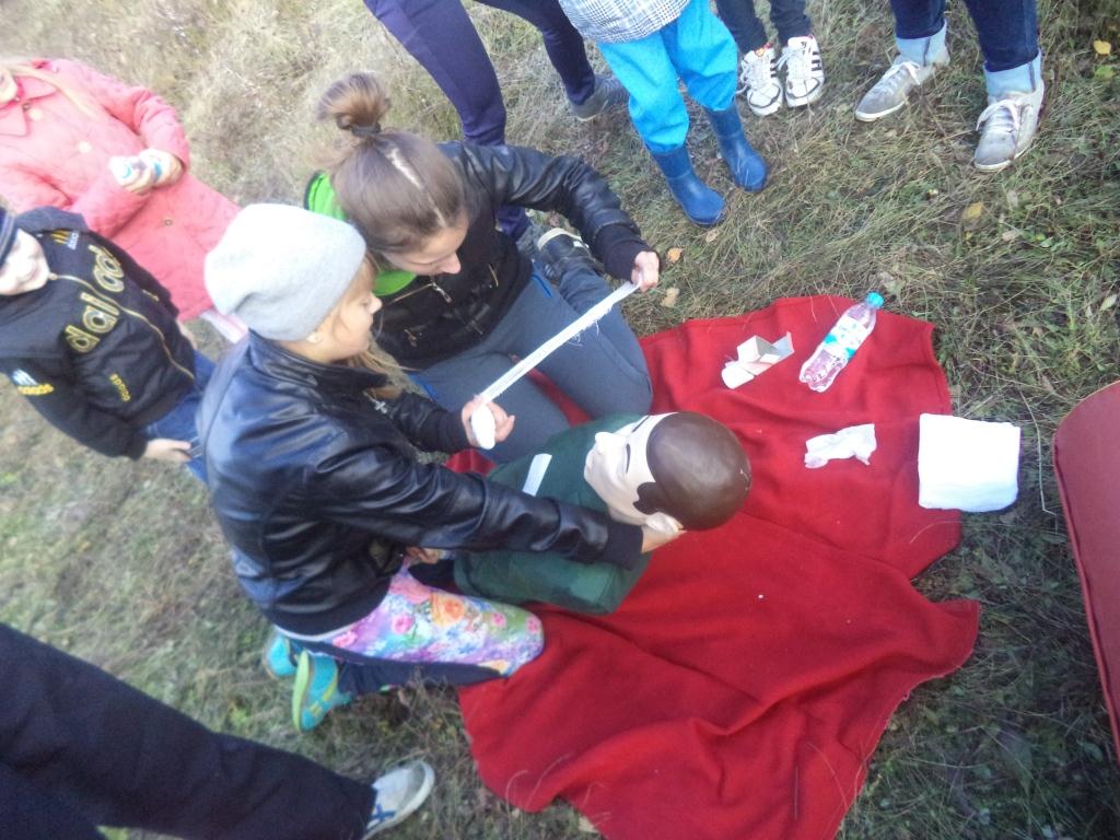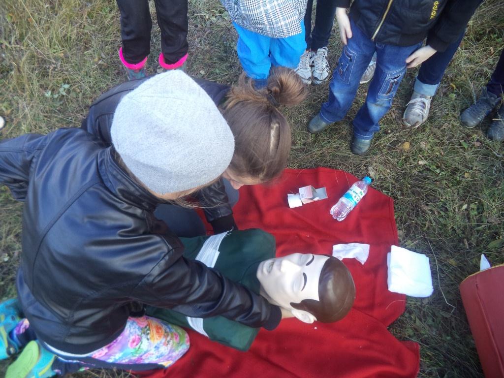 2 октября урок по ОБЖ был проведен на лоне природы. С детьми заранее уточнили маршрут движения. В намеченное место все пришли без опозданий. На поляне старшие ребята разожгли костёр, соблюдая все правила розжига (сам костёр был сделан заранее). В ходе урока учителем ОБЖ Сарсенбаевым М.Б. были проведены тренировки по оказанию первой помощи при ранениях, ожогах, переломах, первой помощи утопающим, переноска раненого и т.п.
