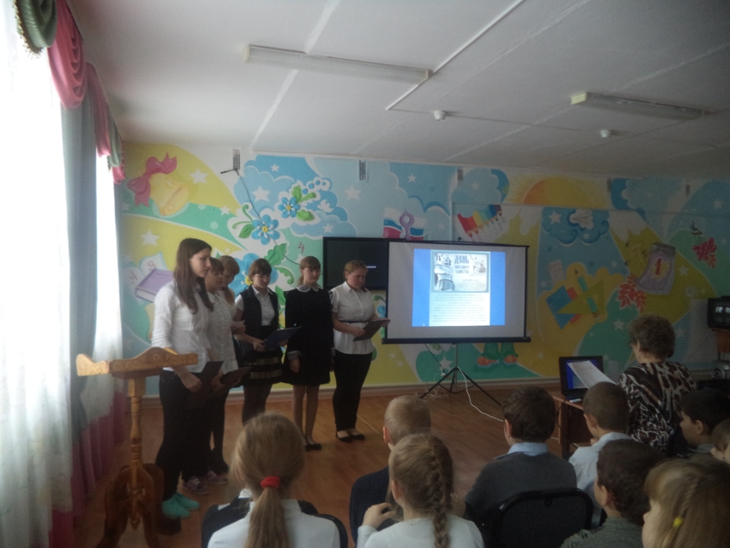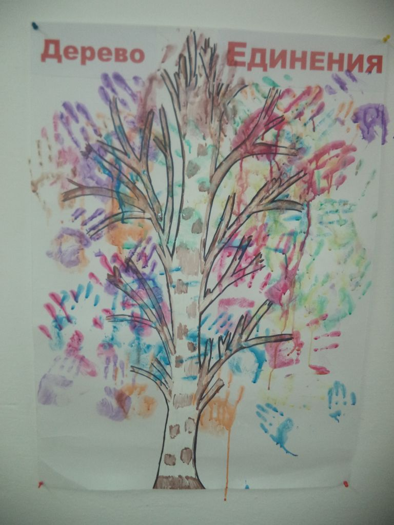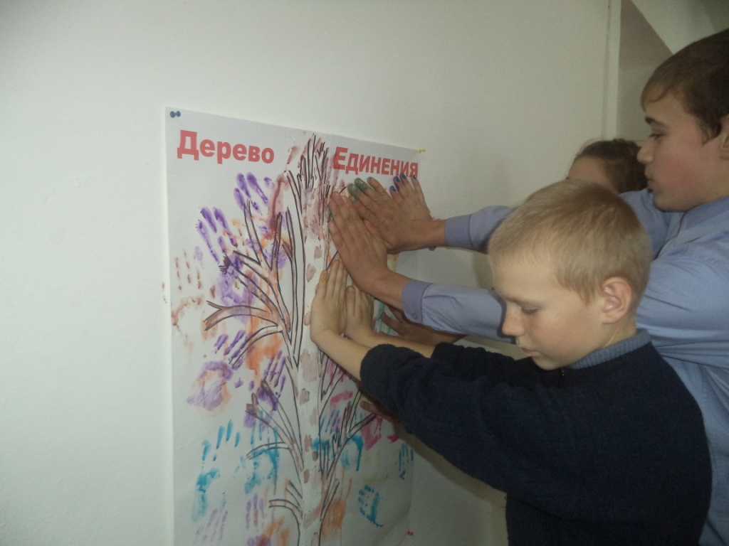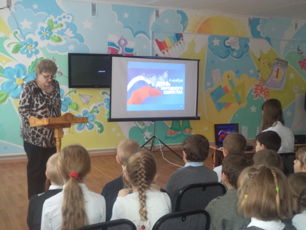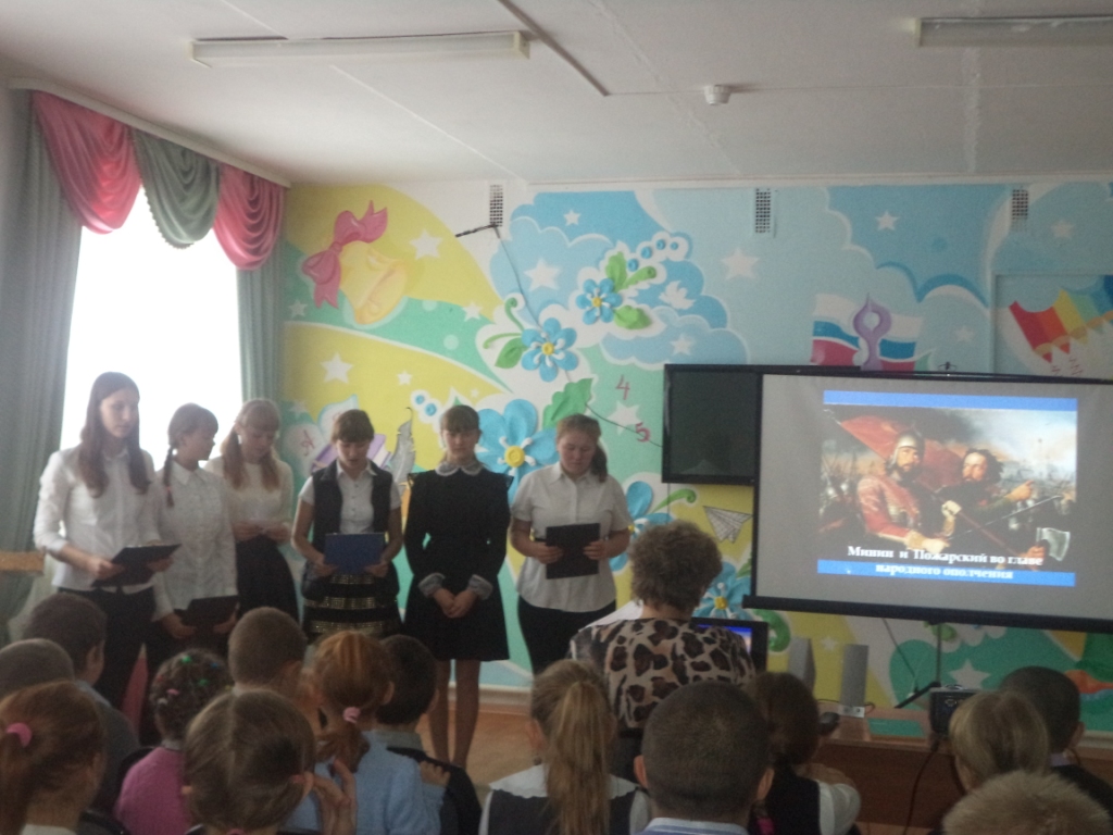 5 ноября в школе прошёл праздник, посвящённый Дню народного единства. Учащиеся 7,10 классов (Веселкова Юля, Леонюк Анна, Кутузова Юля, Петрова Олеся, Цветкова Люба, Юсько Дарья) показали литературно-музыкальную композицию «Пока мы вместе – мы едины». Ребята рассказали об истории нового праздника, вспомнили воинов Руси. Было спето много песен, прочитано много стихов о нашей Родине, о единении. В конце праздника ребята дали клятву жить дружно, единой большой школьной семьёй, никогда никого не обижать, беречь друг друга, чтить предков. Слова своей клятвы они закрепили на «Дереве Единения».