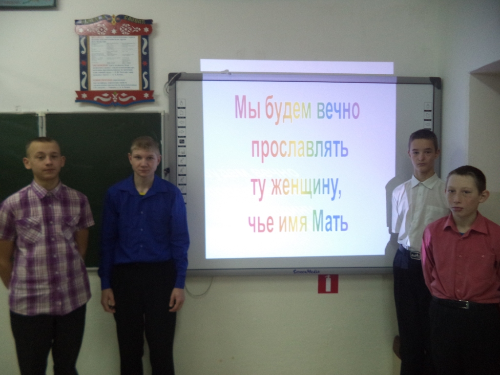 С 16 по 27 ноября в преддверии всероссийского Дня Матери в школе прошёл конкурс рассказов и стихотворений о маме. Победителями стали Абрамюк Ирина и Веселкова Юлия. Классными руководителями были проведены классные часы, беседы, конкурсы рисунков, фотографий на тему «Моя мама лучшая на свете». Многие мамы в течение этих дней провели с ребятами мастер-классы по рукоделию и кулинарии. 27 ноября состоялся праздник «Свет маминой любви», на котором ребята поздравляли своих Мам, дарили подарки, песни, проводили шуточные конкурсы. На празднике все поздравления и тёплые слова звучали только для любимых и дорогих, нежных и заботливых, для самых милых и родных на Земле – для наших обожаемых мамочек!